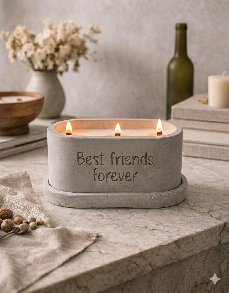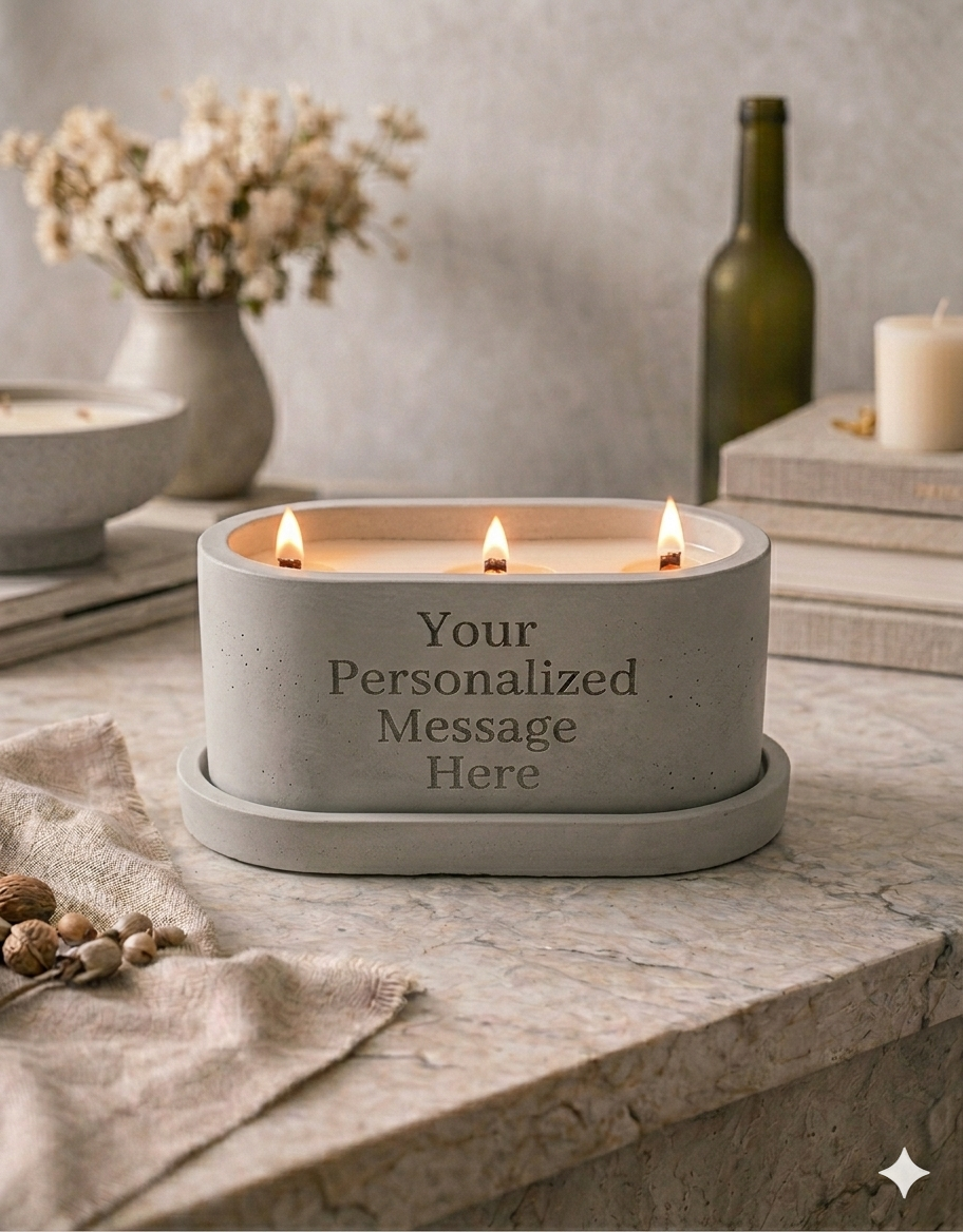 Looking for a way to make your gift truly unforgettable? You can now have your three wick concrete candle permanently etched with a personalized message for your loved one! Using precision laser engraving, I can add your choice of words in the specific font that fits their style. Whether it’s a meaningful date, an inside joke, or a heartfelt note. It’s a beautiful, durable way to turn a hand-poured candle into a timeless keepsake, and all for just an additional $12.